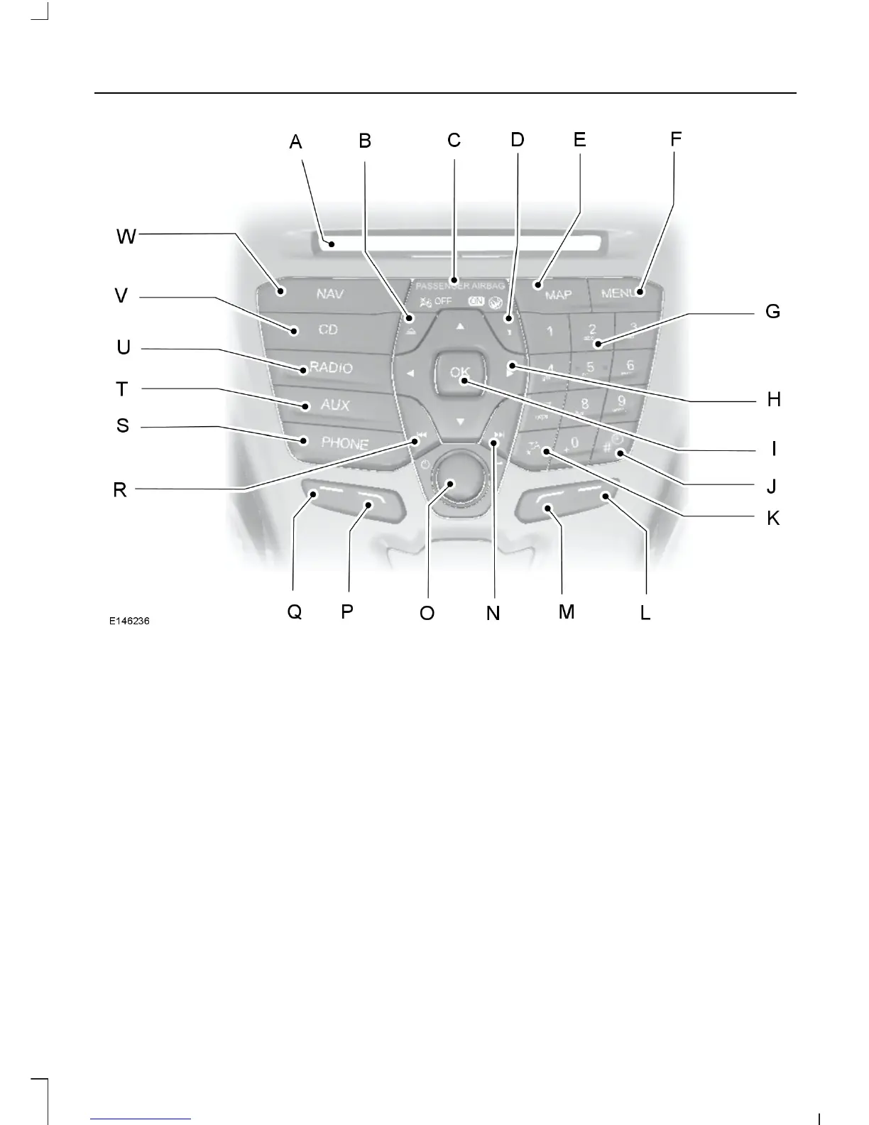 INFO: Press the button to access radio, CD, USB, IPod and Navigation