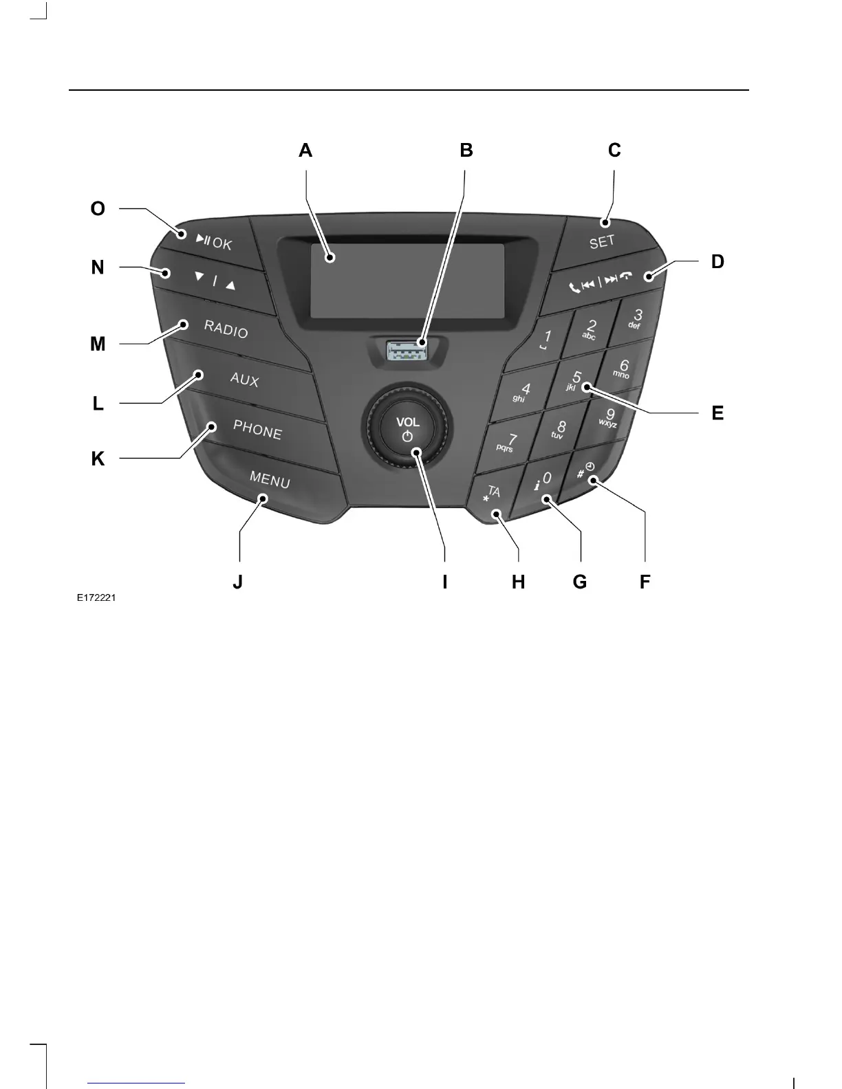 Numeric keypad: Press a button to recall a previously stored radio station. In
