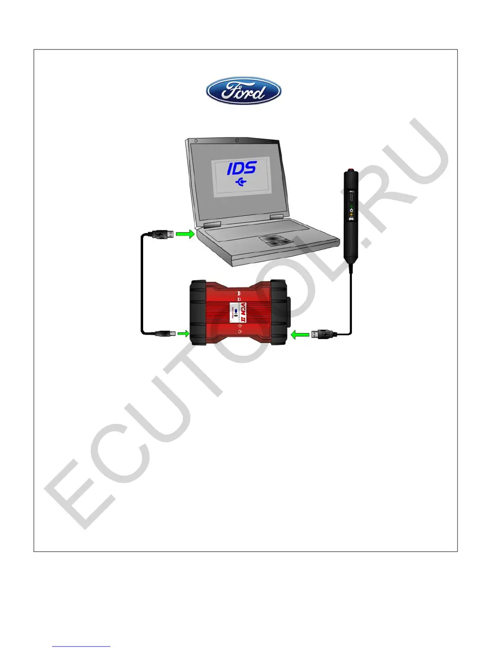 If your Ford Automobile Accessories VCM II won't power on, ensure secure cable connections between the VCM II and the vehicle DLC or PC USB port. Check for any bent, broken, missing, or dirty/corroded cable connector pins or connector pins on the VCM II unit. Verify sufficient battery voltage (12V nominal) at the vehicle DLC. If powering from a PC USB port, ensure the port has power, or try a different port. If the boot-up fails after 5 seconds, attempt to recover the software. If the issue persists after these checks, contact your regional technical support.