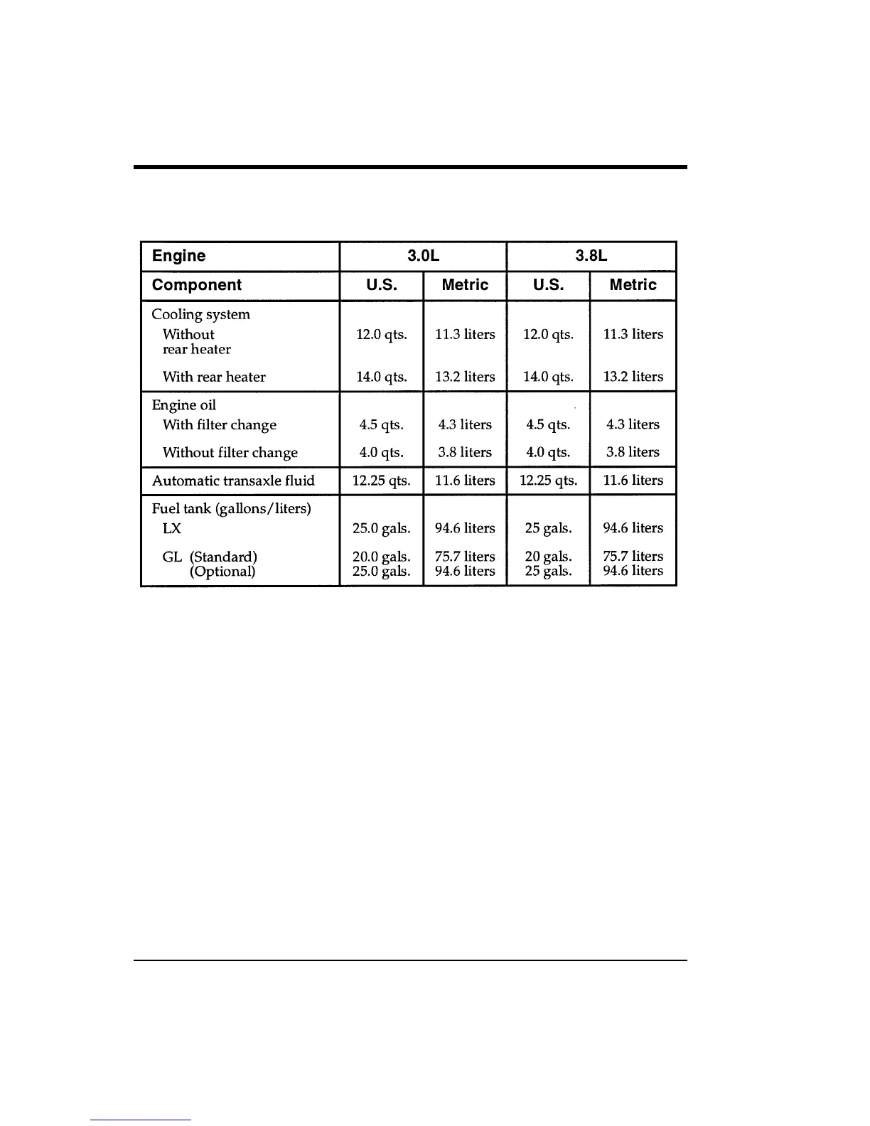 % [CS00400(ALL)07/96] Refill Capacities