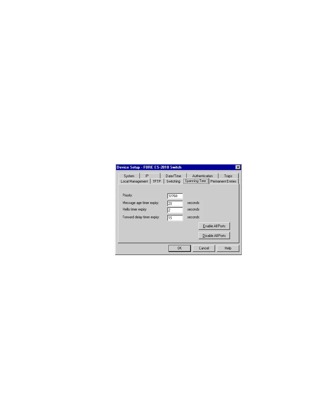 The switch is delivered with Spanning Tree default values set to those recommended by the