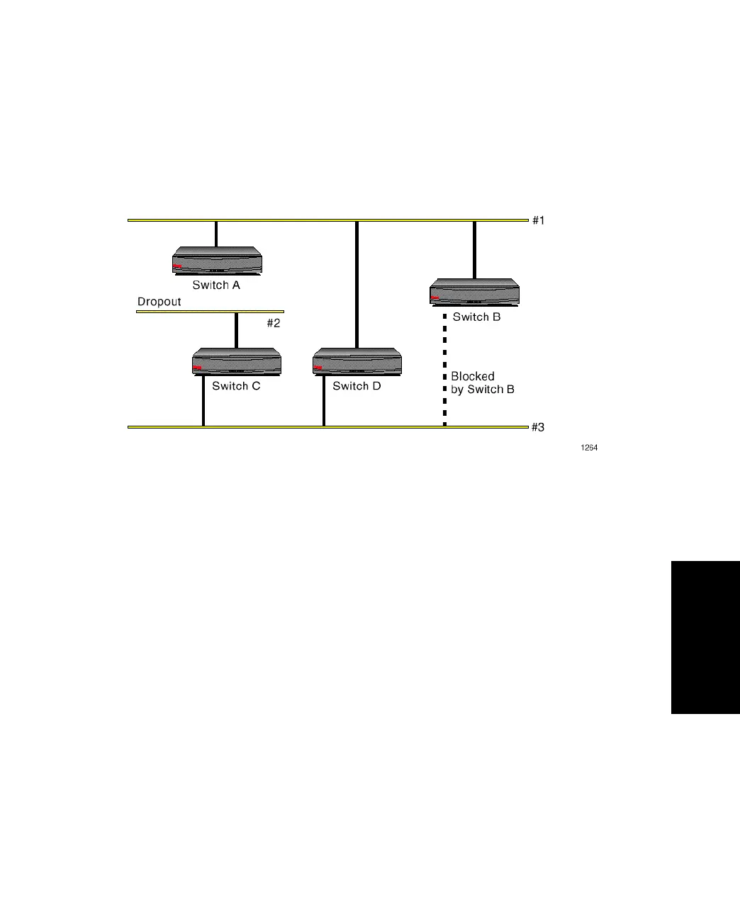 of adapting automatically to the new topology, that is Switch B stops looping by blocking the