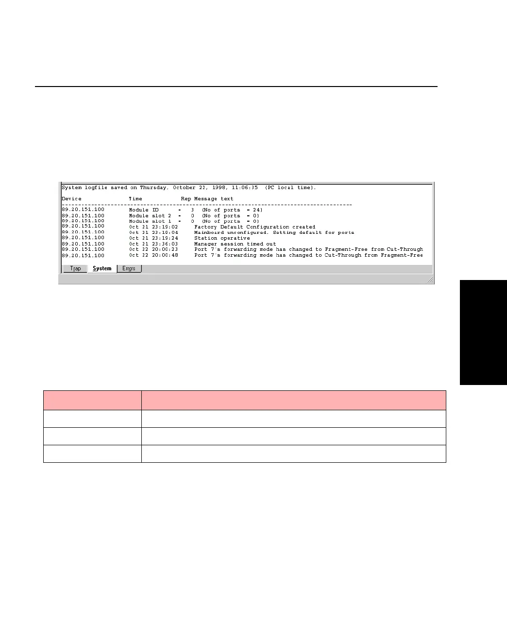 The System window contains a log of all the major switch events with date and times (for