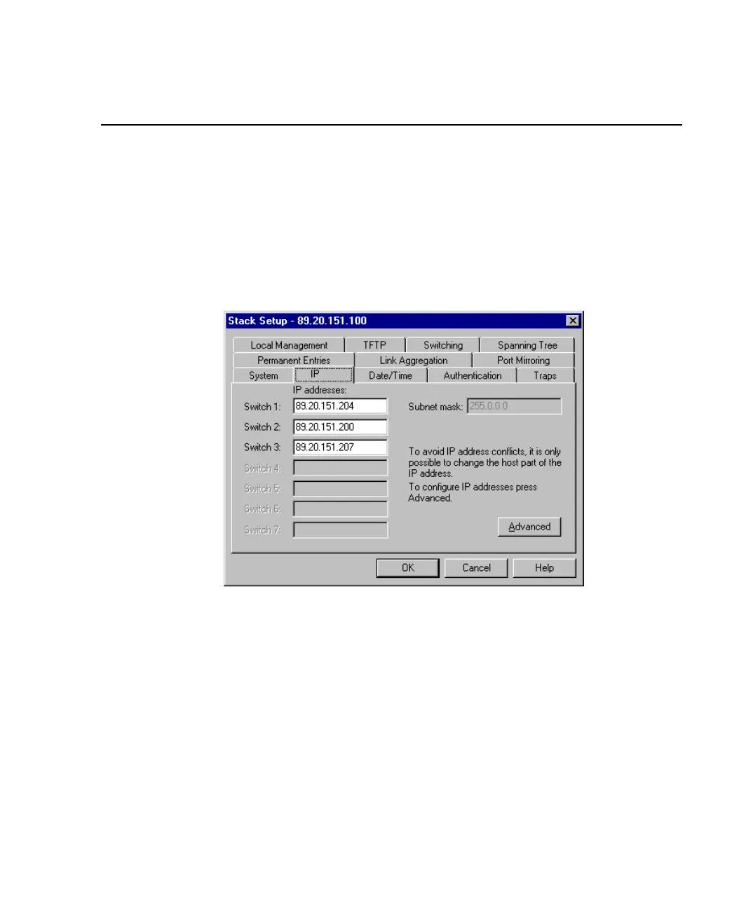 IP Tab of the Stack Setup Dialog Box