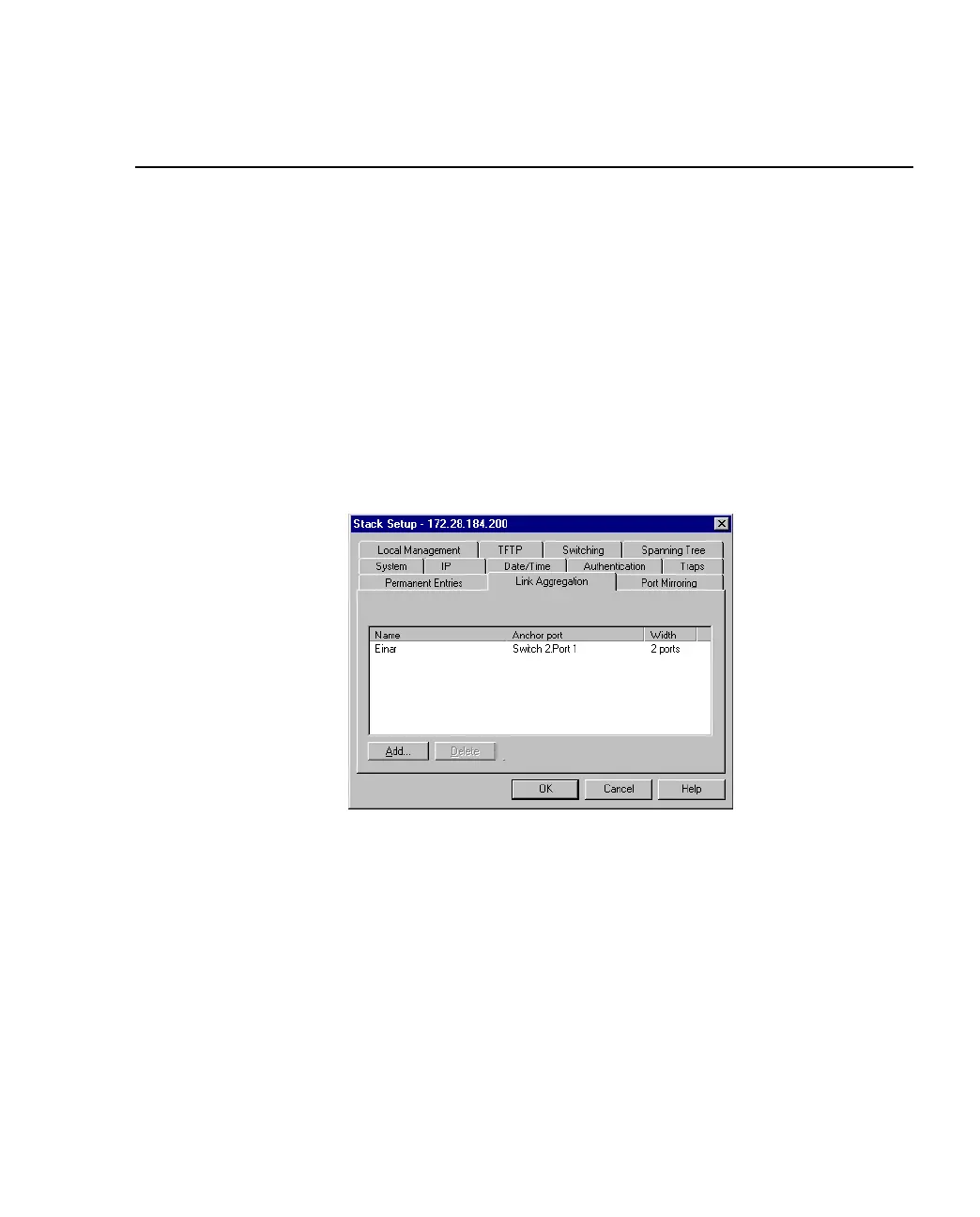 Link Aggregation Tab of the Stack Setup Dialog Box