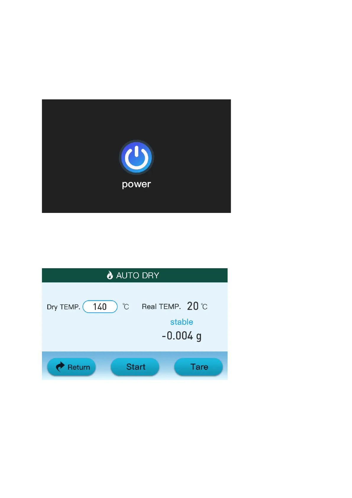 Touch the Auto dry button, then enter function, chose the dry temperature, the touch