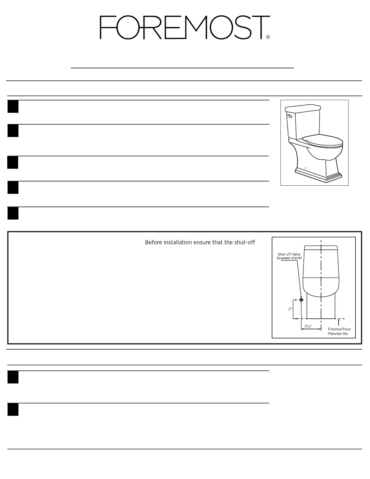 REMARQUE IMPORTANTE CONCERNANT L’ALIMENTATION EN EAU : Avant d’installer le toilette,
