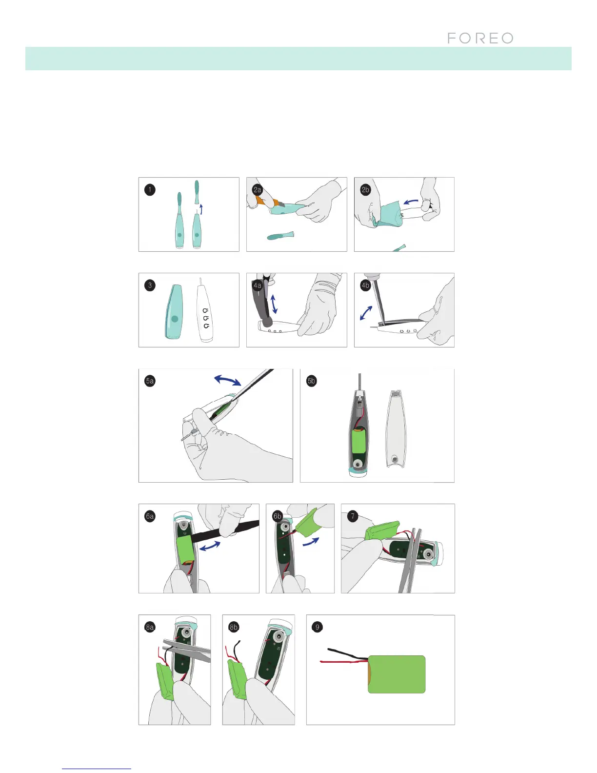 should not be thrown away with household waste. To remove the battery, pull off the brush head, peel