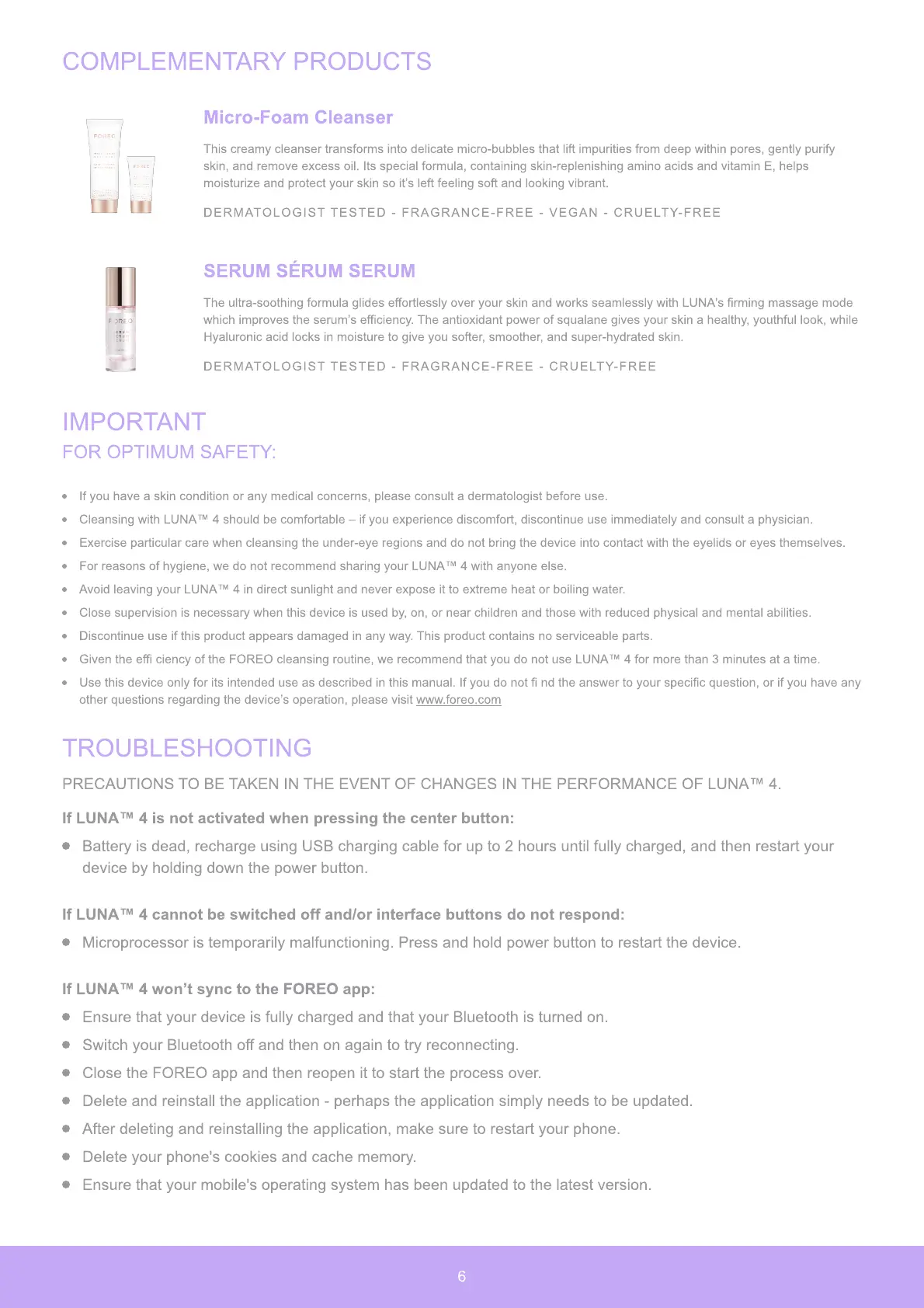 other questions regarding the device’s operation, please visit www.foreo.com