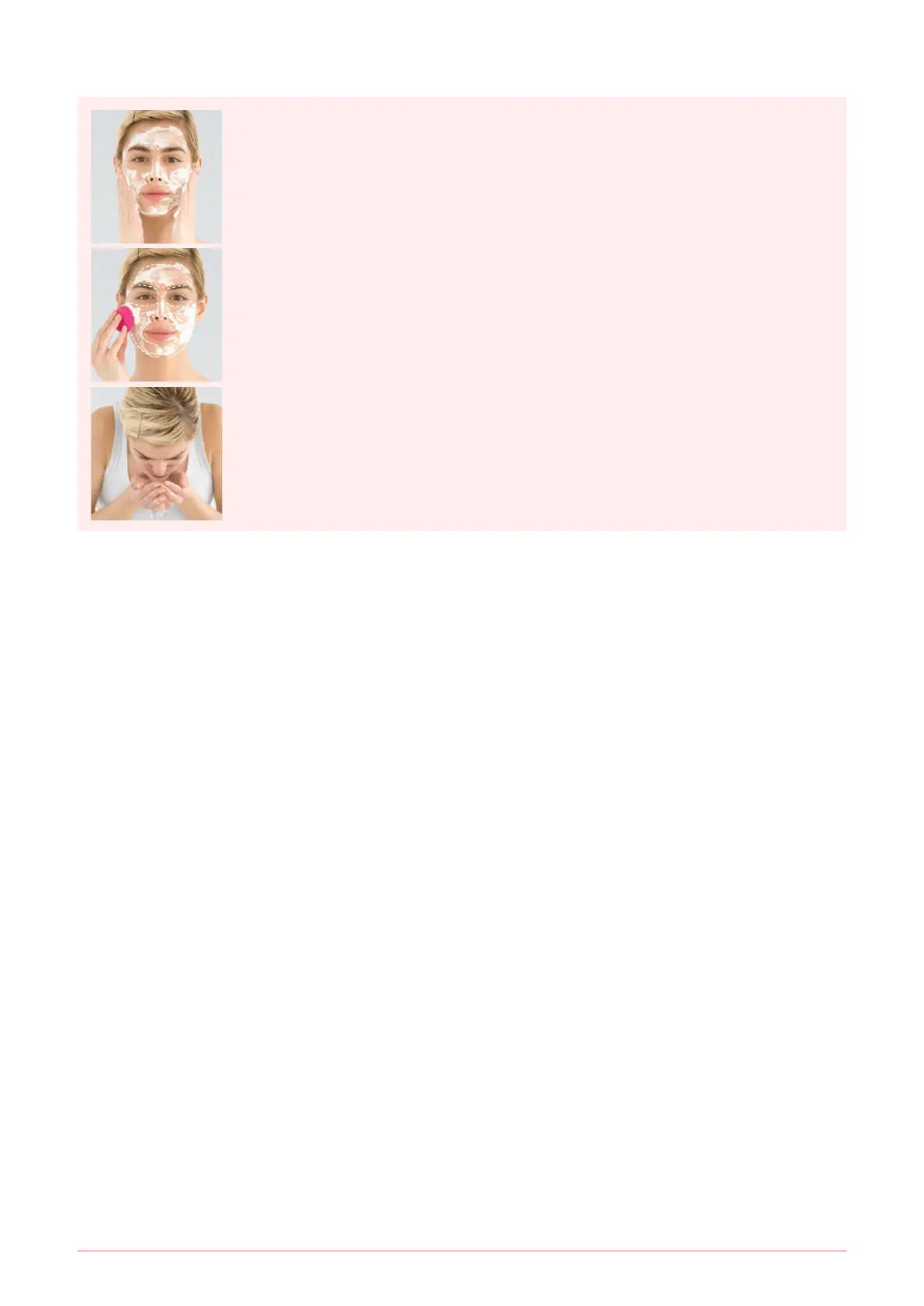 • Exercise particular care when cleansing the under-eye regions and do not bring the device into contact with the
