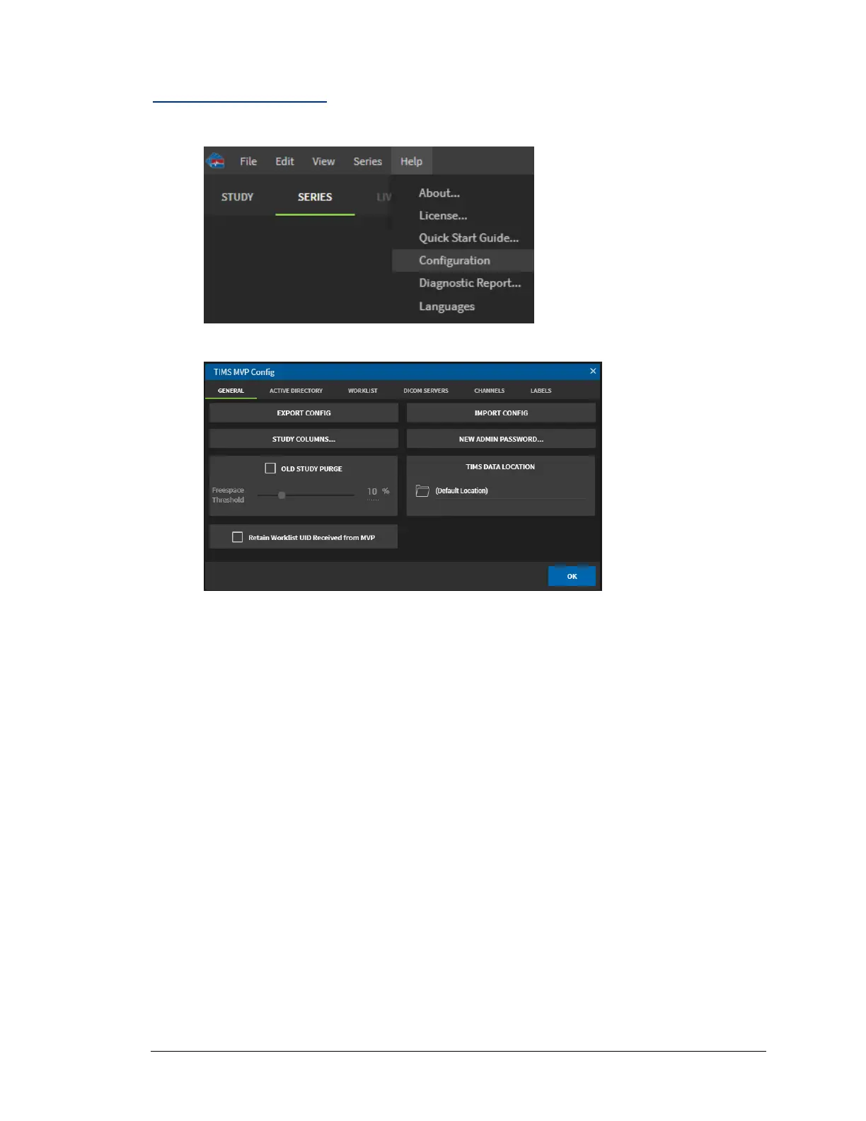 2. From the TIMS MVP Config page, if not selected, click the General tab.