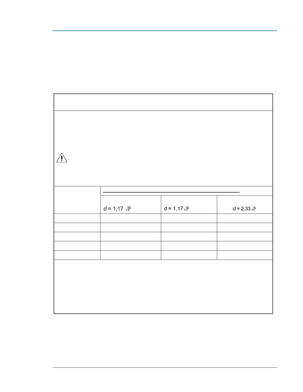 separation distance d in meters (m) can be estimated using the equation applicable to the