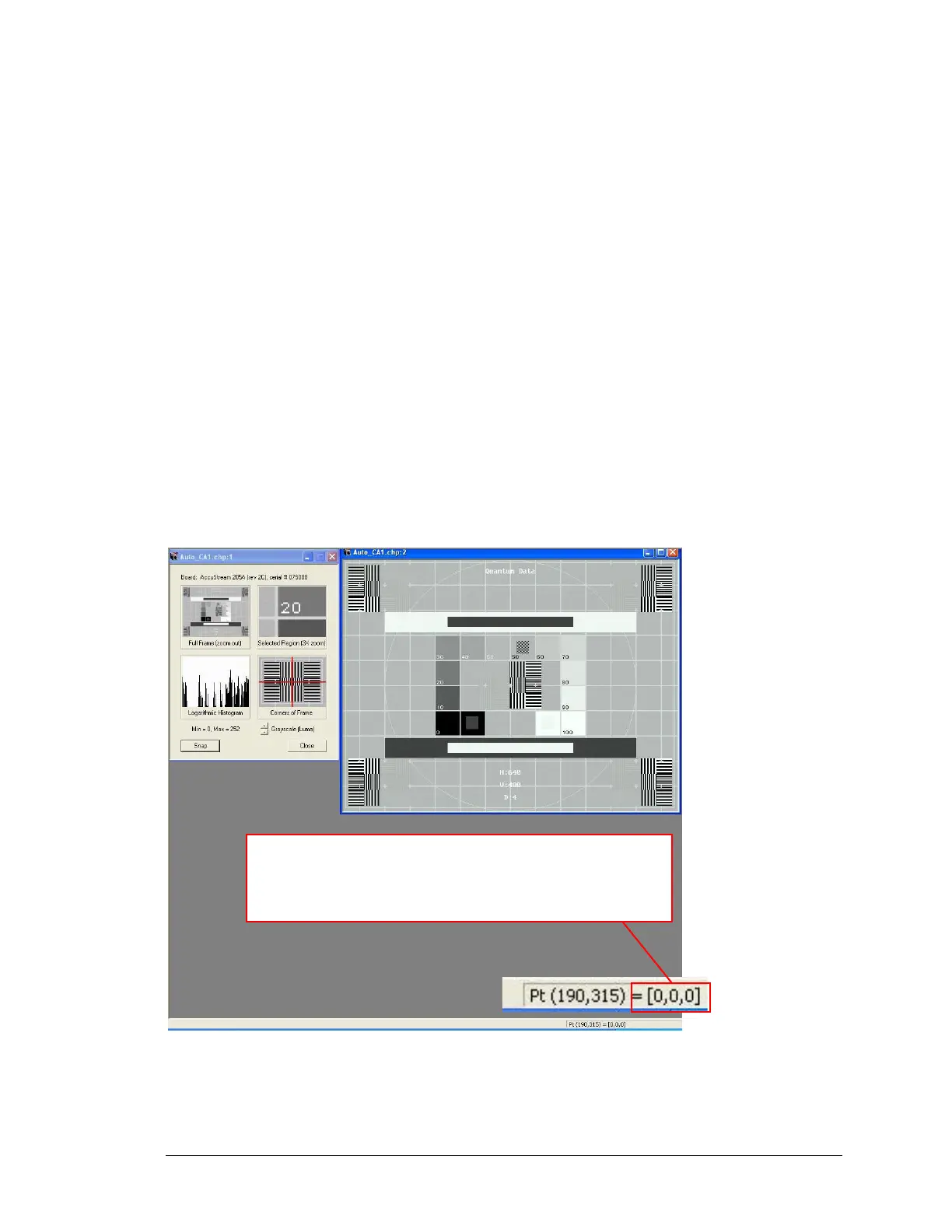 in the pixel value reader (in the lower right of Auto-SYNC’s status bar) or in the histogram. The
