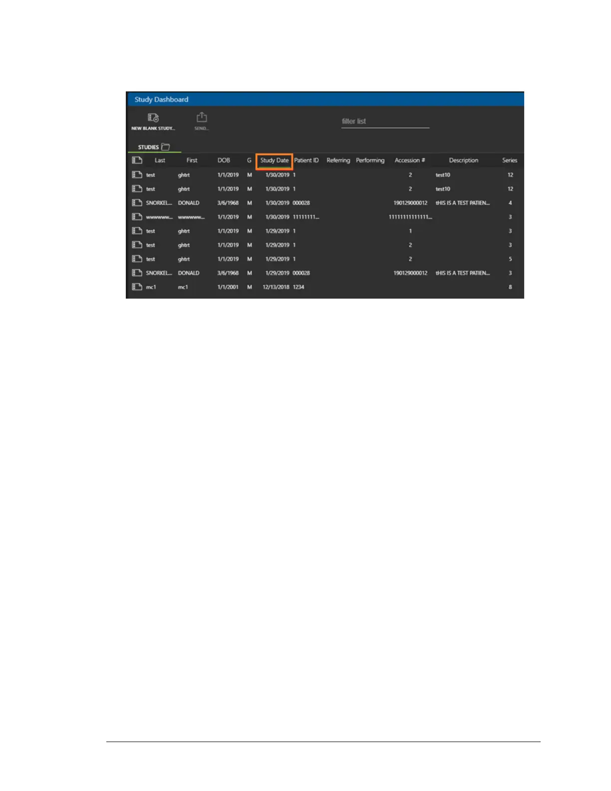 3. Click on the Study Date column. If it is not in descending order, where the oldest studies