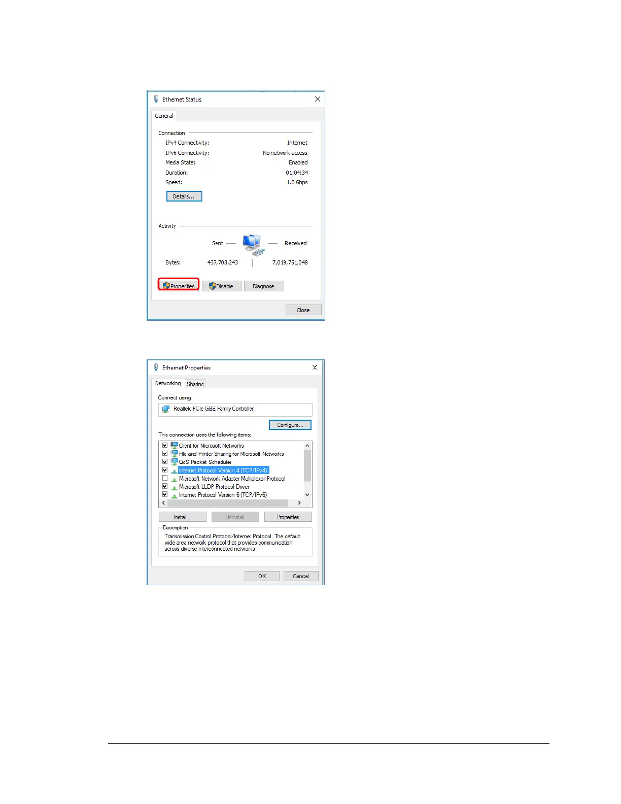 3. Click the Properties button to access the Ethernet Properties.