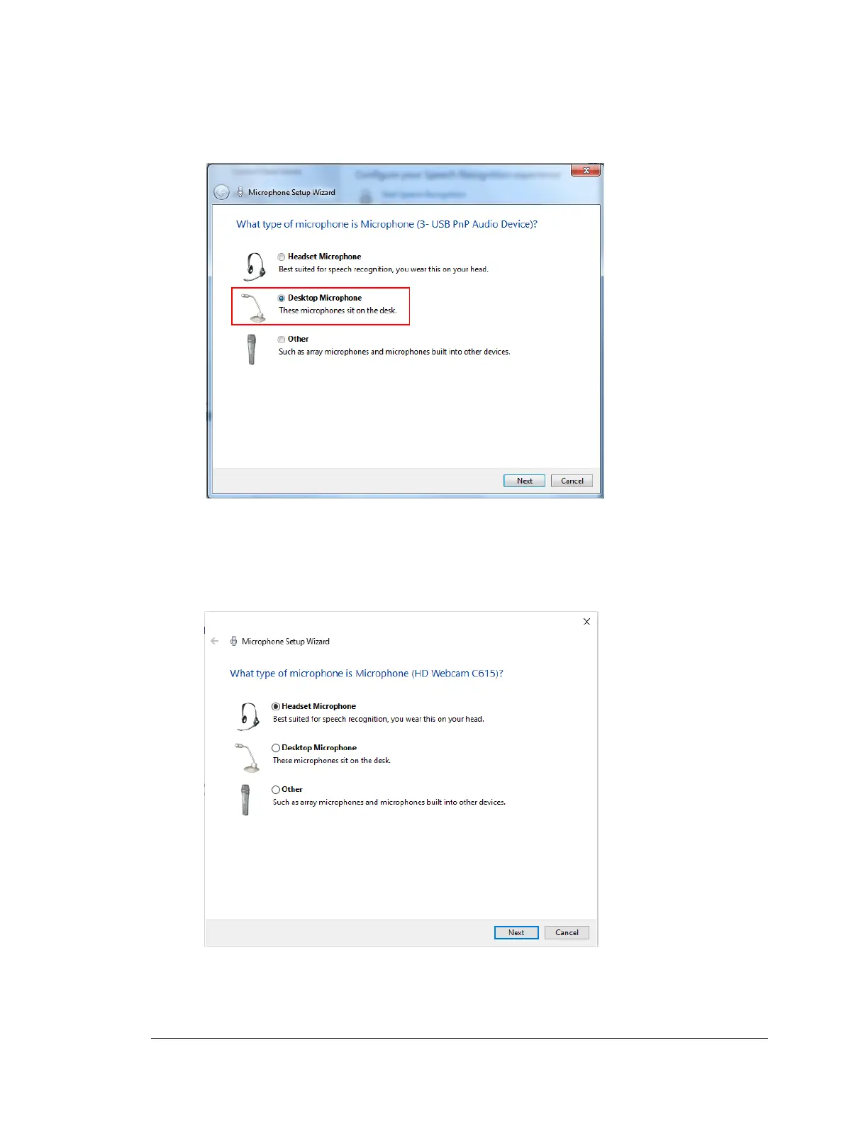 4. When the Microphone Setup Wizard starts, select the type of microphone you are using