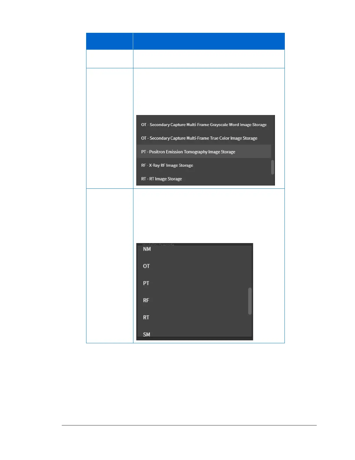 modality identifier name. Scroll through the list to find