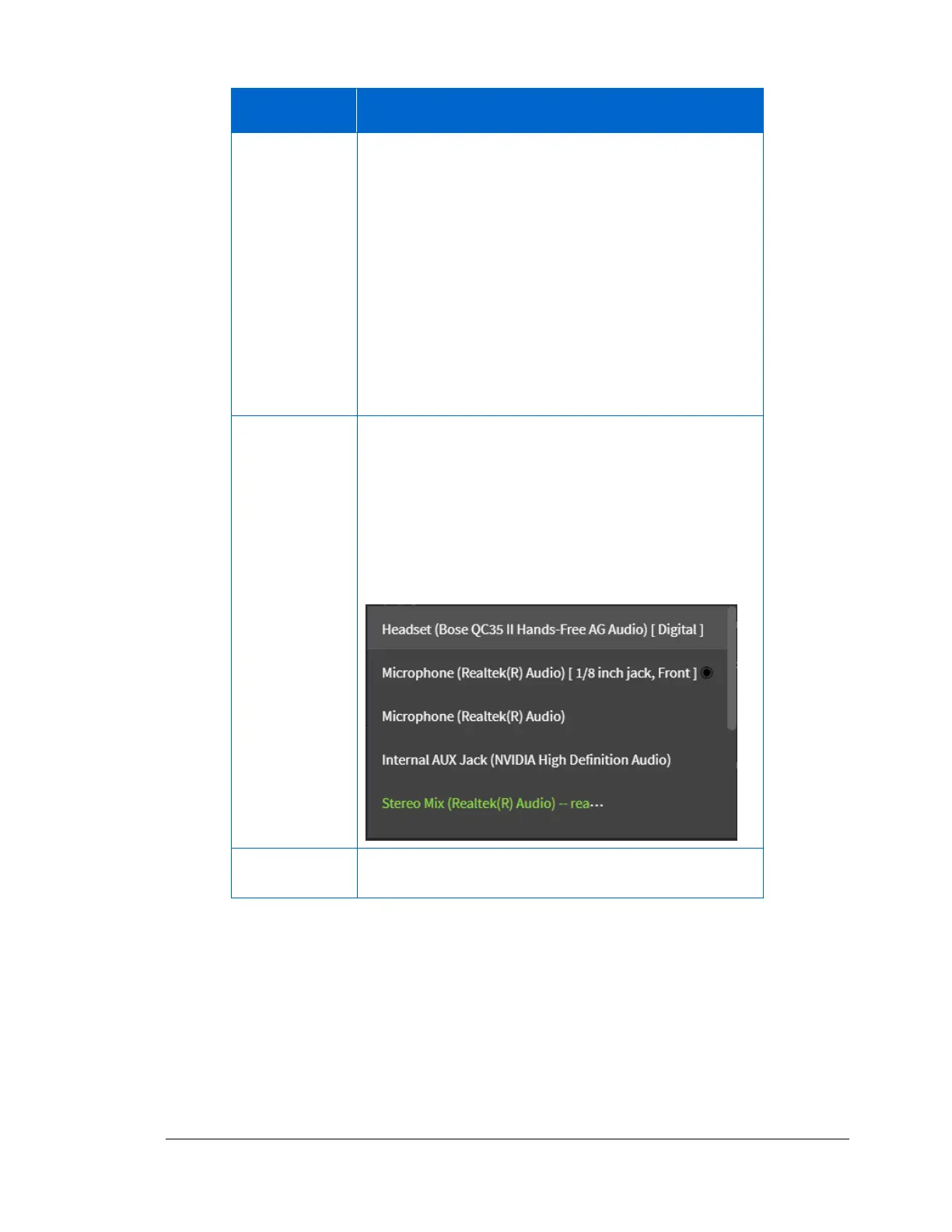 available audio sources appear in green.