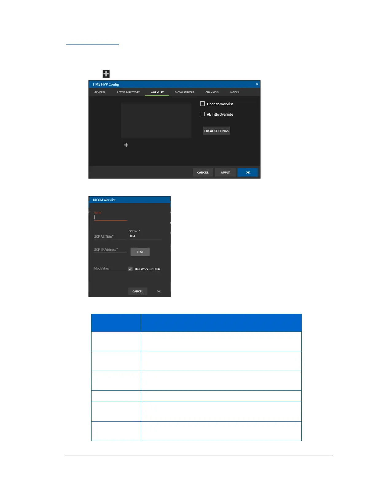 2. Complete the fields in the DICOM Worklist page using the table below.