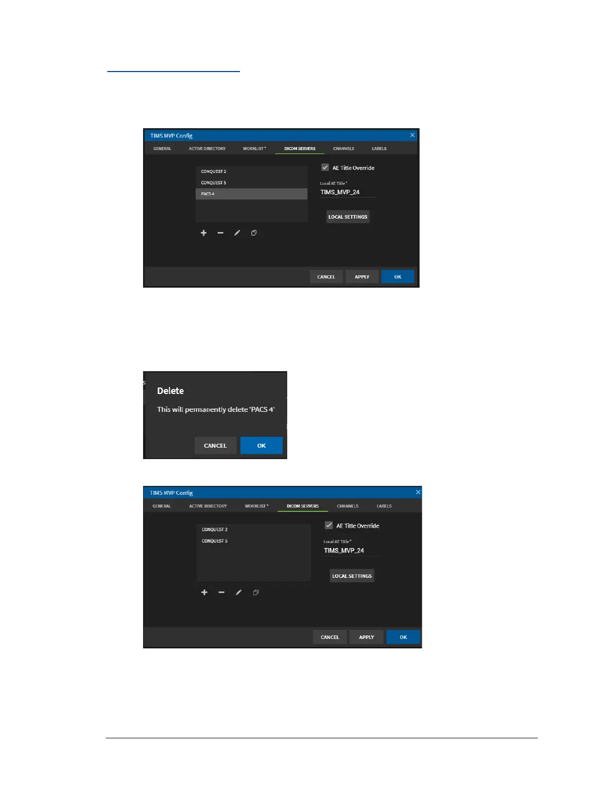Result: The DICOM server is removed from the list of servers.