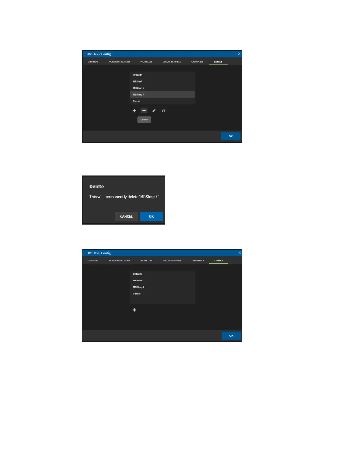 2. Click the Delete icon (minus sign) below the list of Labels to delete the selected label.