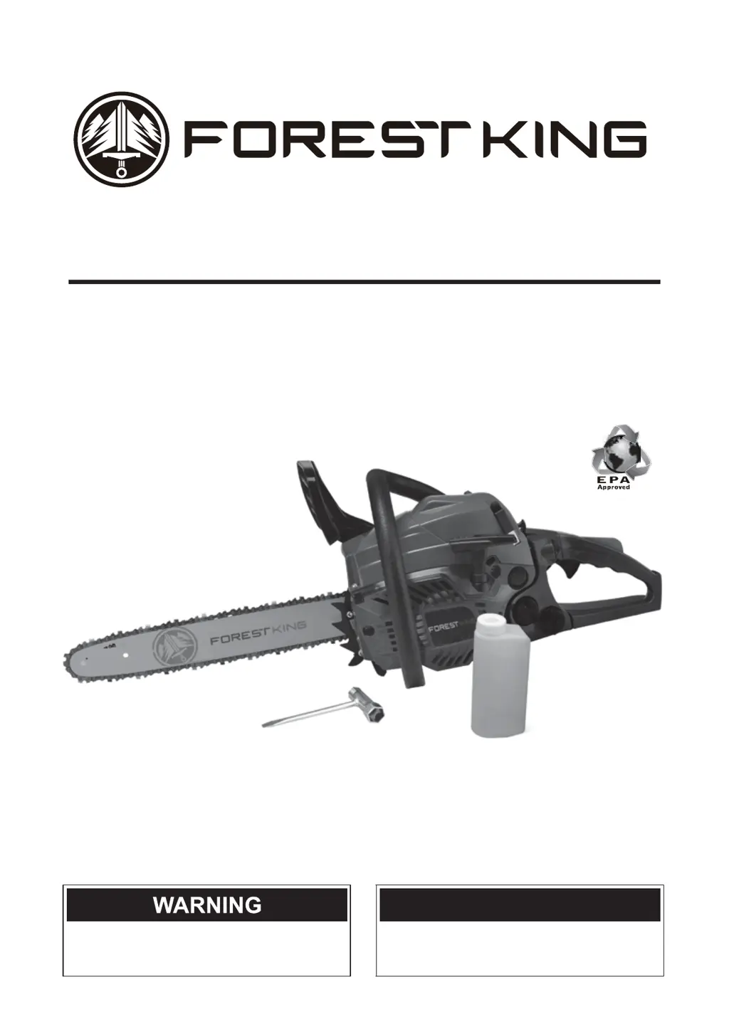 If your Forest King Chainsaw engine won't start, there are several potential causes. First, make sure the ignition switch is turned ON. If the engine is flooded, reference the digital starting section of this manual. Also, check if the fuel tank is empty and fill it with the proper fuel mixture if needed. A faulty spark plug can also prevent the engine from starting, so install a new one. Finally, ensure that fuel is reaching the carburetor by checking for a dirty fuel filter (replace if necessary) or a faulty fuel line (repair or replace if necessary).