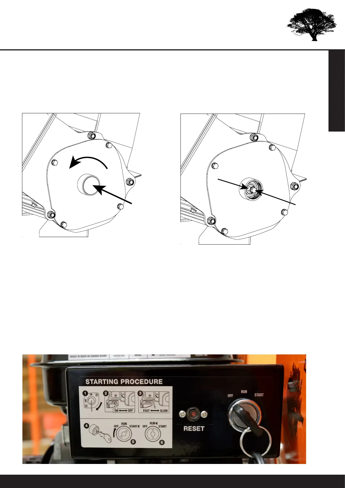 • Before starting you should test the pull start to ensure that the cord isn’t tight. If it is tight then the drum