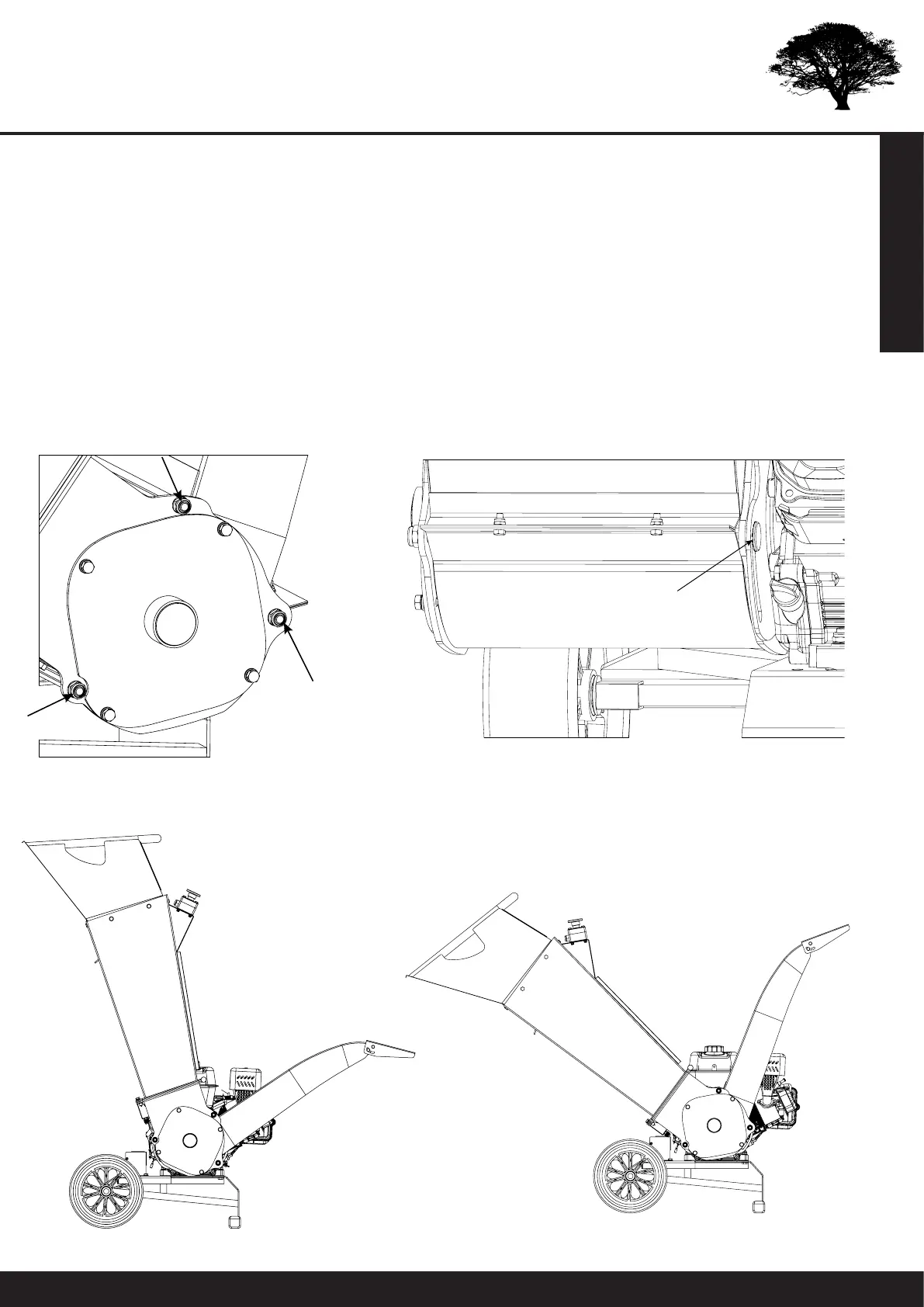to change the angle of the feed hopper and the discharge chute. The drum housing can be rotated by a