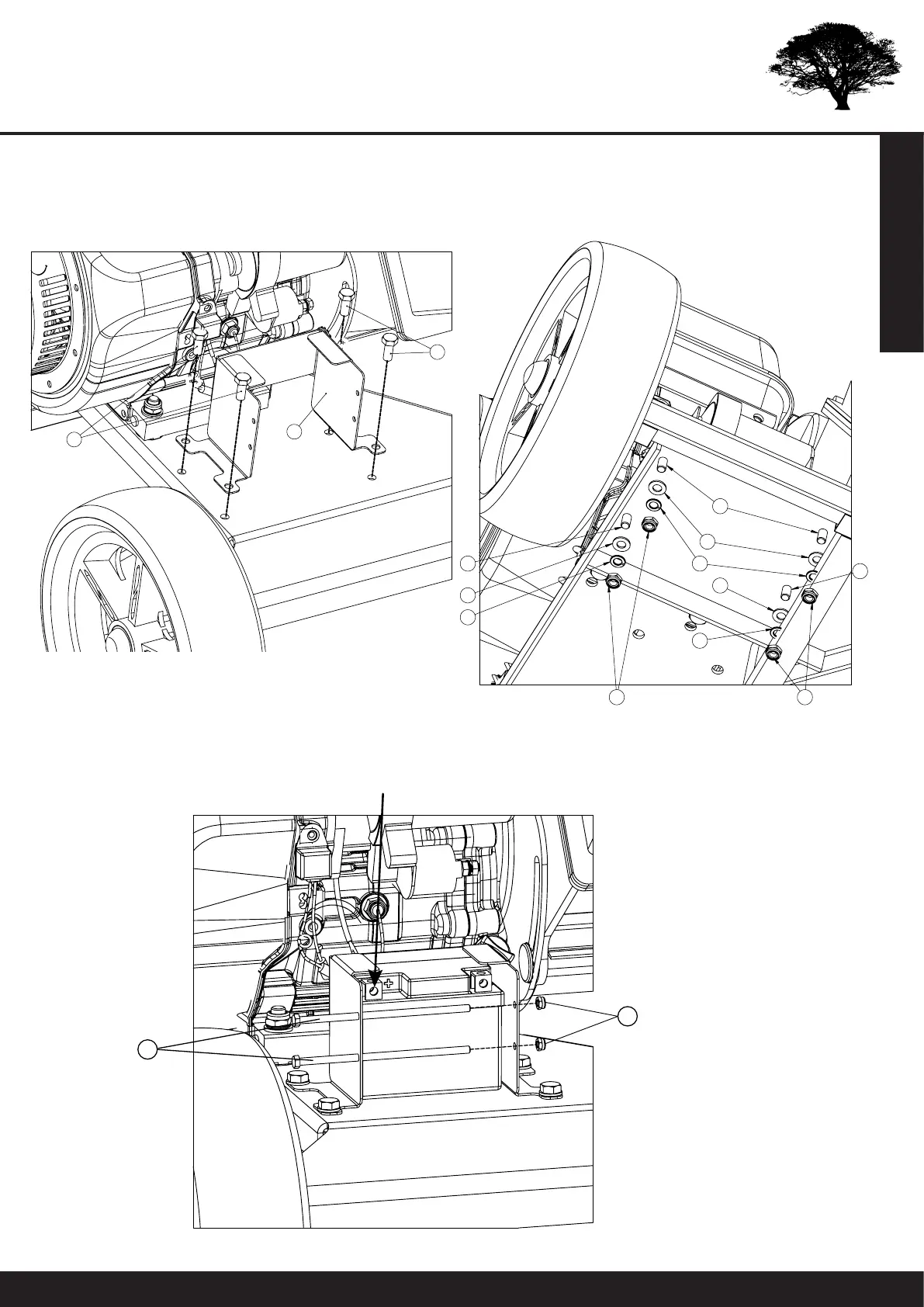 Place the battery in the box and secure using the two M5 x 125 bolts (58) and nuts (59). Connect the battery