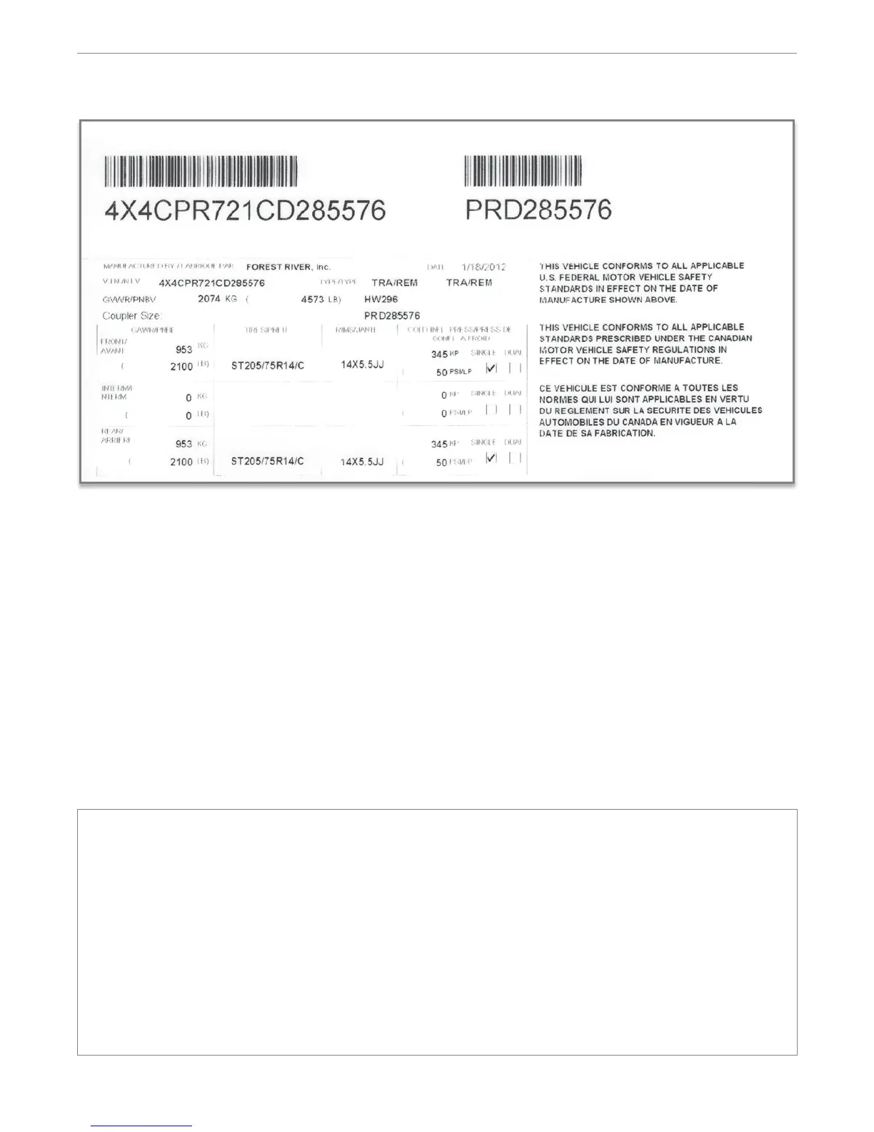 Forest River Inc. recommends that you keep a copy of this information separate from the camper, in the event that