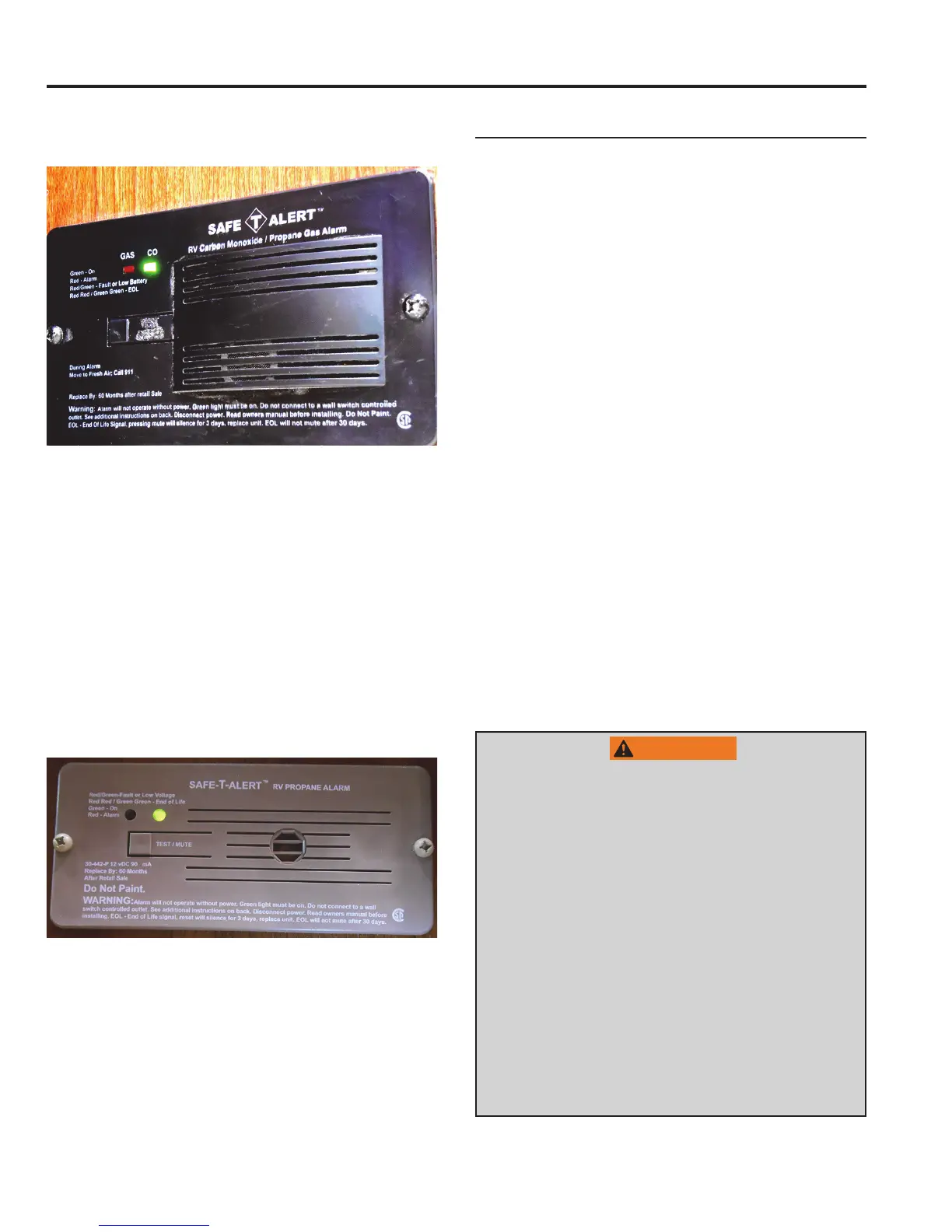 • Test alarm each week while RV is in use and before