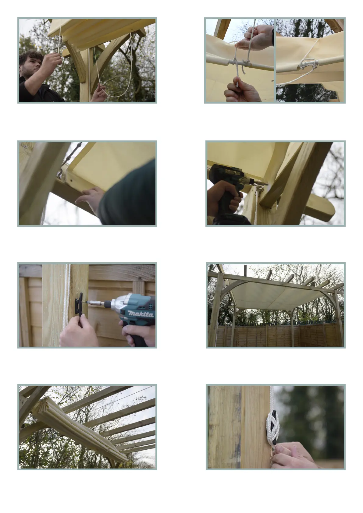 tied rope at the back of the pergola. Ensure the