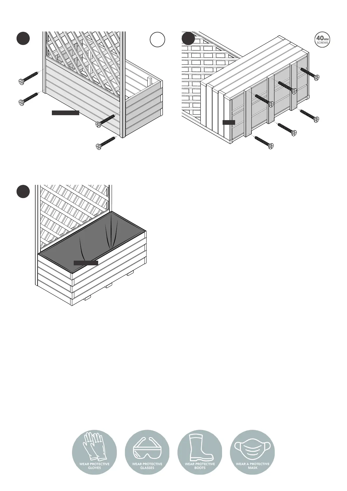Left and Right panels, using 4 x 90mm screws. Ensure