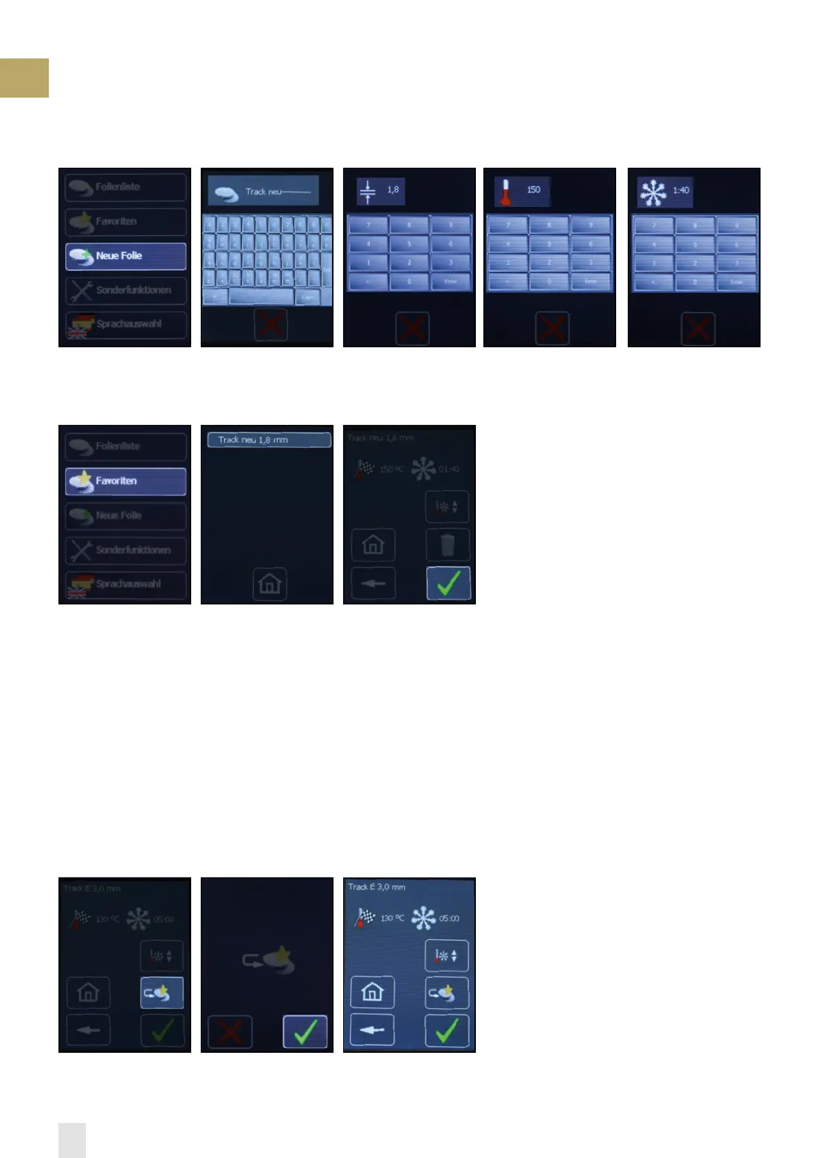 1.) „Neue Folien“ wählen 2.) Folienname eingeben 3.) Folienstärke eingeben 4.) Solltemperatur eingeben