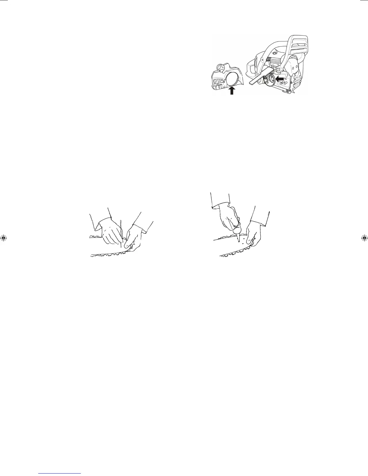 • Install chain and sharpen, or fit spare chain. It may be necessary to change or sharpen the chain