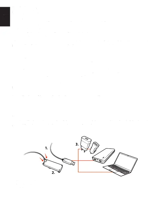 After turning the remote on, the power LED lights up red. Slow fl ashing of the LED means weak