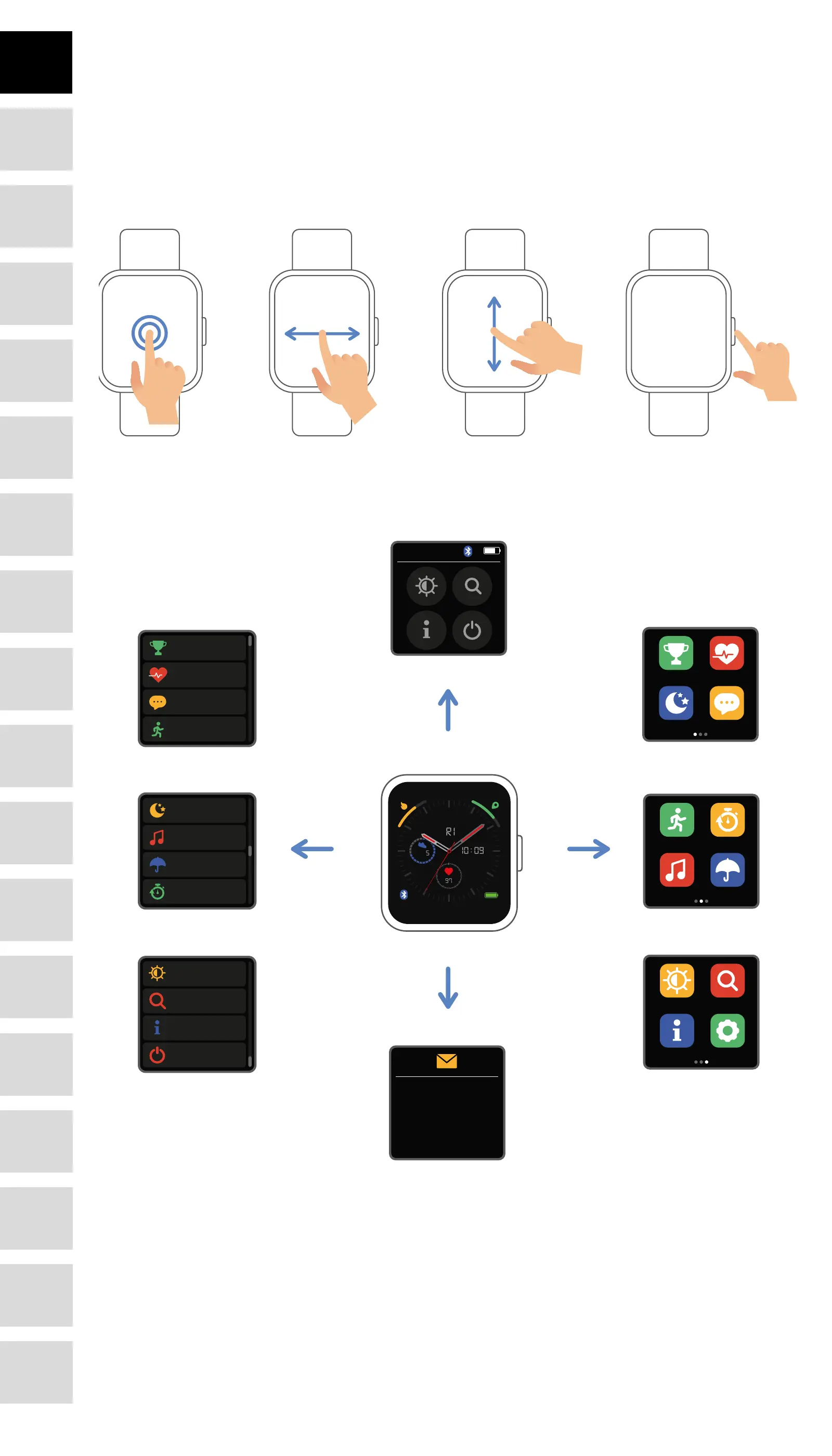 » Slide from left to right in the watch face interface to enter the menu interfaces.