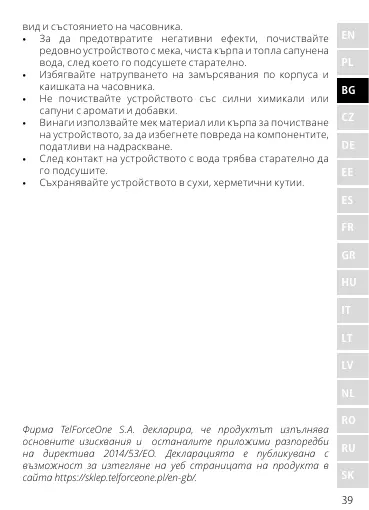 Фирма TelForceOne S.A. декларира, че продуктът изпълнява