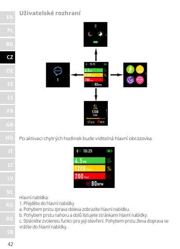 Po aktivaci chytrých hodinek bude viditelná hlavní obrazovka.