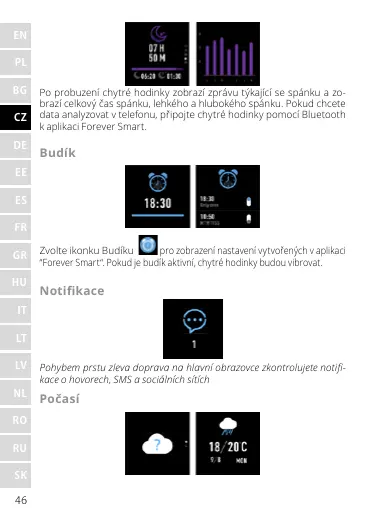 “Forever Smart“. Pokud je budík aktivní, chytré hodinky budou vibrovat.