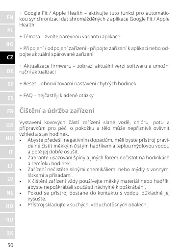 + Reset – obnoví tovární nastavení chytrých hodinek