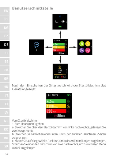 Nach dem Einschalten der Smartwatch wird der Startbildschirm des