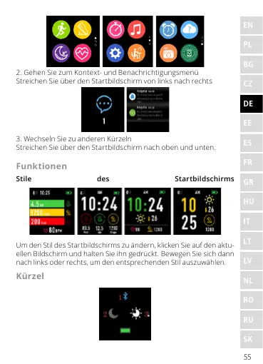 Streichen Sie über den Startbildschirm nach oben und unten.