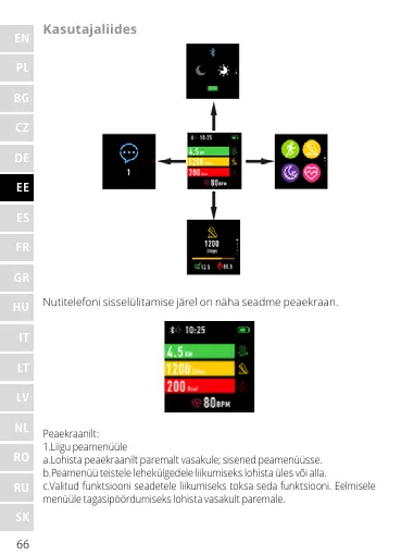 b.Peamenüü teistele lehekülgedele liikumiseks lohista üles või alla.