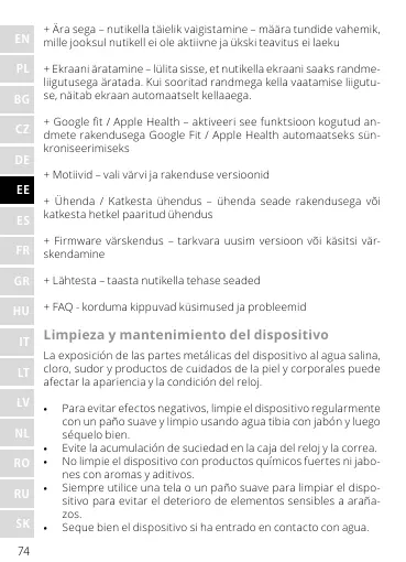 • Evite la acumulación de suciedad en la caja del reloj y la correa.