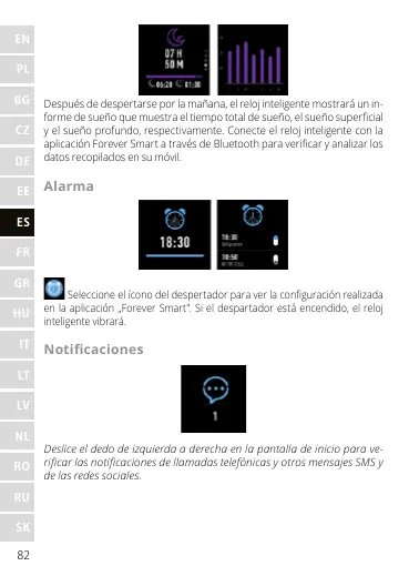 en la aplicación „Forever Smart”. Si el despartador está encendido, el reloj