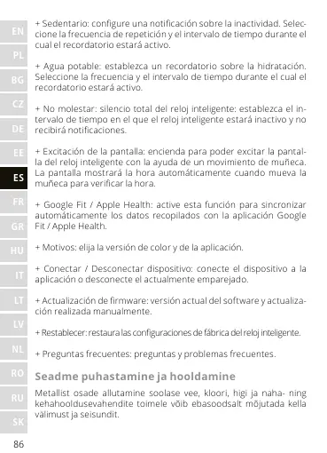 + Sedentario: congure una noticación sobre la inactividad. Selec-