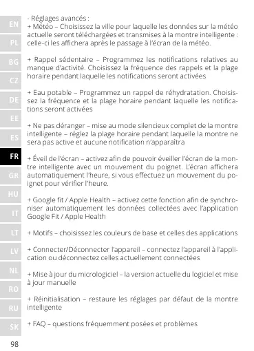 actuelle seront téléchargées et transmises à la montre intelligente :