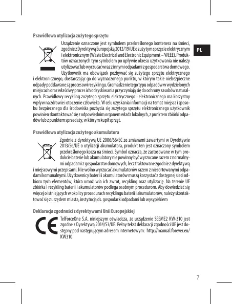 TelForceOne S.A. niniejszym oświadcza, że urządzenie SEEME2 KW-310 jest