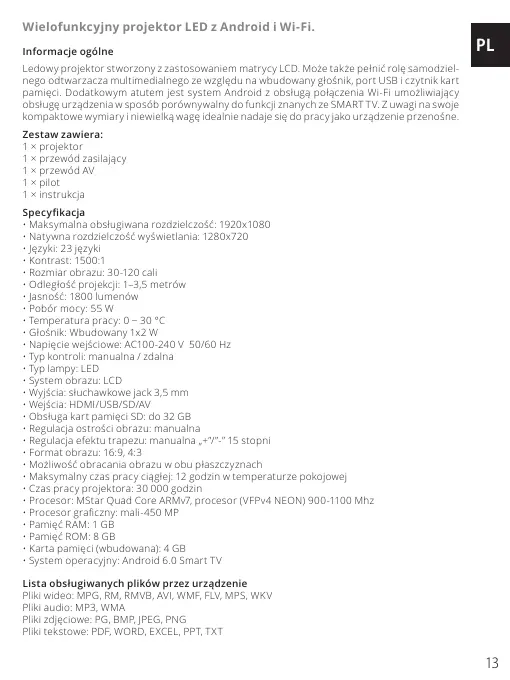 Wielofunkcyjny projektor LED z Android i Wi-Fi.